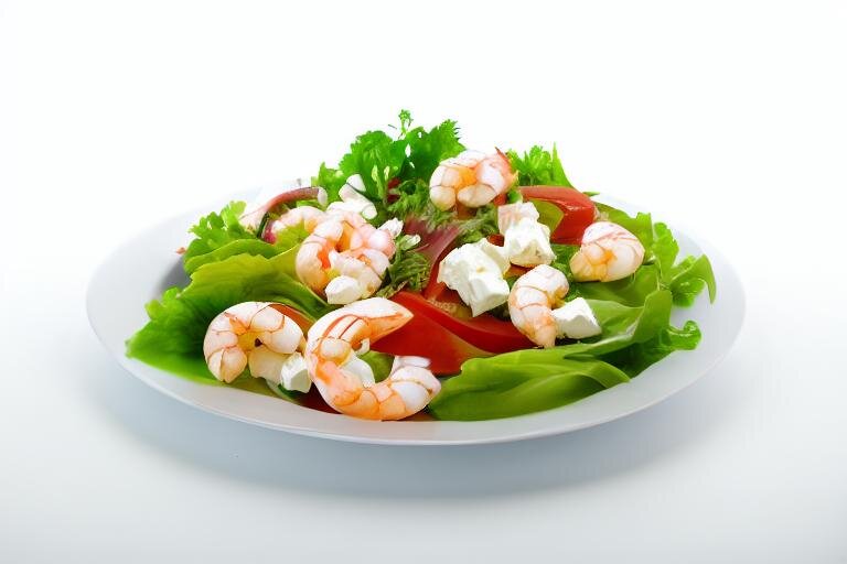 Тёплый салат из креветок, рукколы и феты