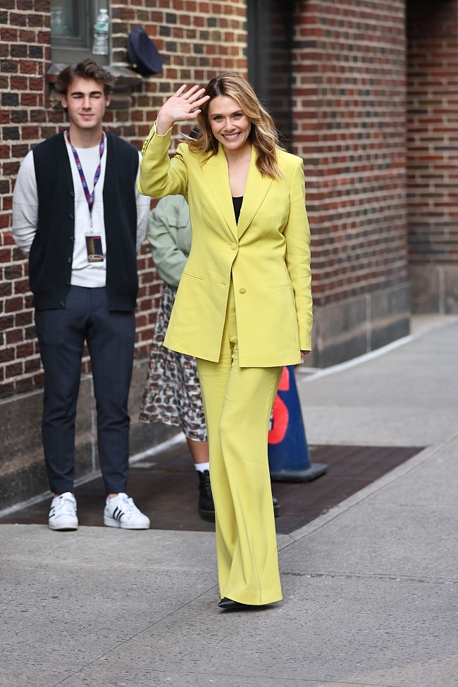 Элизабет Олсен в лимонном костюме появилась на улицах Нью-Йорка