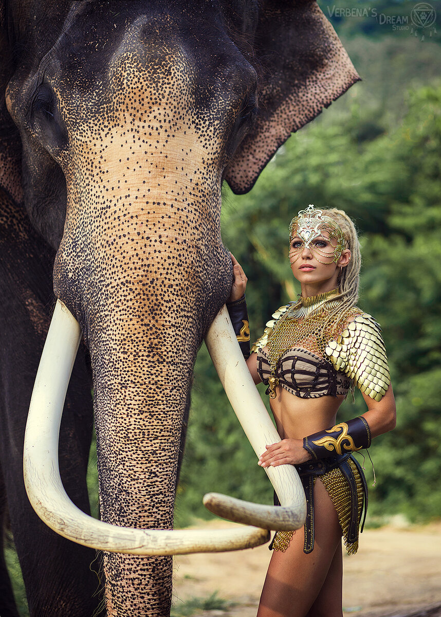 Встречайте образ "Принцесса Джунглей"! Костюм состоит из кожаных элементов и золотой кольчуги и чешуи, которую я в поте лица плела специально к поездке и очень тряслась, чтобы мой багаж никуда не пропал во время полета))) Помогло мне отснять костюм целое семейство слонов: суровый папа с двухметровыми бивнями, настороженная мама, и очень задорный и веселый сынишка слоненок, который кайфанул с процесса ничуть не меньше меня: он и позировал, и катал меня, и обнимал, и с удовольствием принимал угощения)) И напоследок - щекотушки))) Модель, образ: Дарья Лефлер