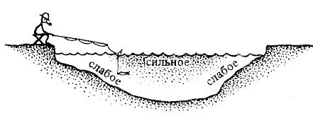 Секрет первый: течение всегда сильнее к центру и слабее к берегу.