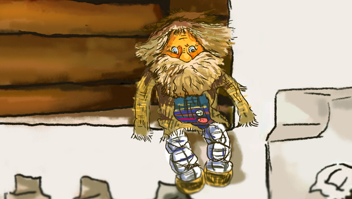 -Сиди уже! – сказал маленький старичок с густой бородой и в синей рубашке. Именно он сидел наверху печки и болтал босыми ножками.