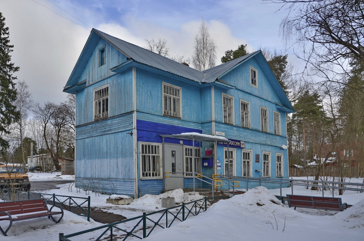 Встречаются в поселке и образцы моего любимого архитектурного стиля. Речь, конечно же, идет о северном модерне. Так, все на той же Школьной улице находится дореволюционная дача, которая в начале XX века, предположительно, принадлежала священнику. (Школьная,6)