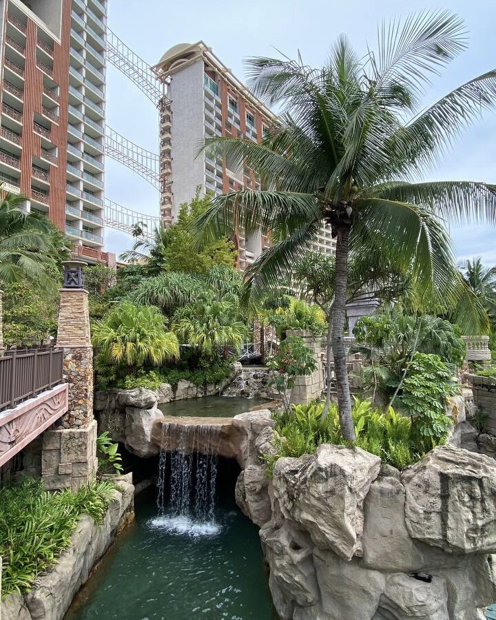 Здесь очень много зелени, подвесные мосты - настоящий «затерянный мир». Бассейн поделен на зоны: есть отделение доя самых маленьких детей, для детей постарше и для взрослых. Самое глубокое место в бассейне почти 4 м, но нырять запрещено.