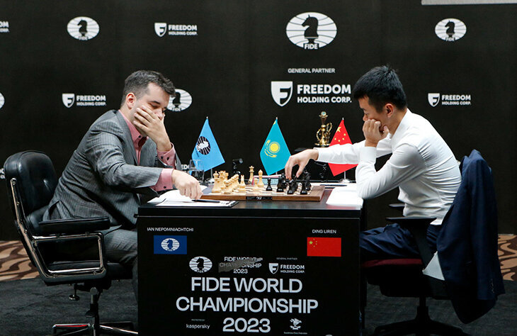 На этой стадии оба соперника играли очень здорово. Непомнящий прекрасно реагировал на сложную позицию, считал множество вариантов. Насколько я понял, в этом и заключается задумка Лижэнь Дина — создавать сложные игровые позиции, где он будет пересчитывать Яна. И действительно, Непомнящий в этой битве ошибся первым.