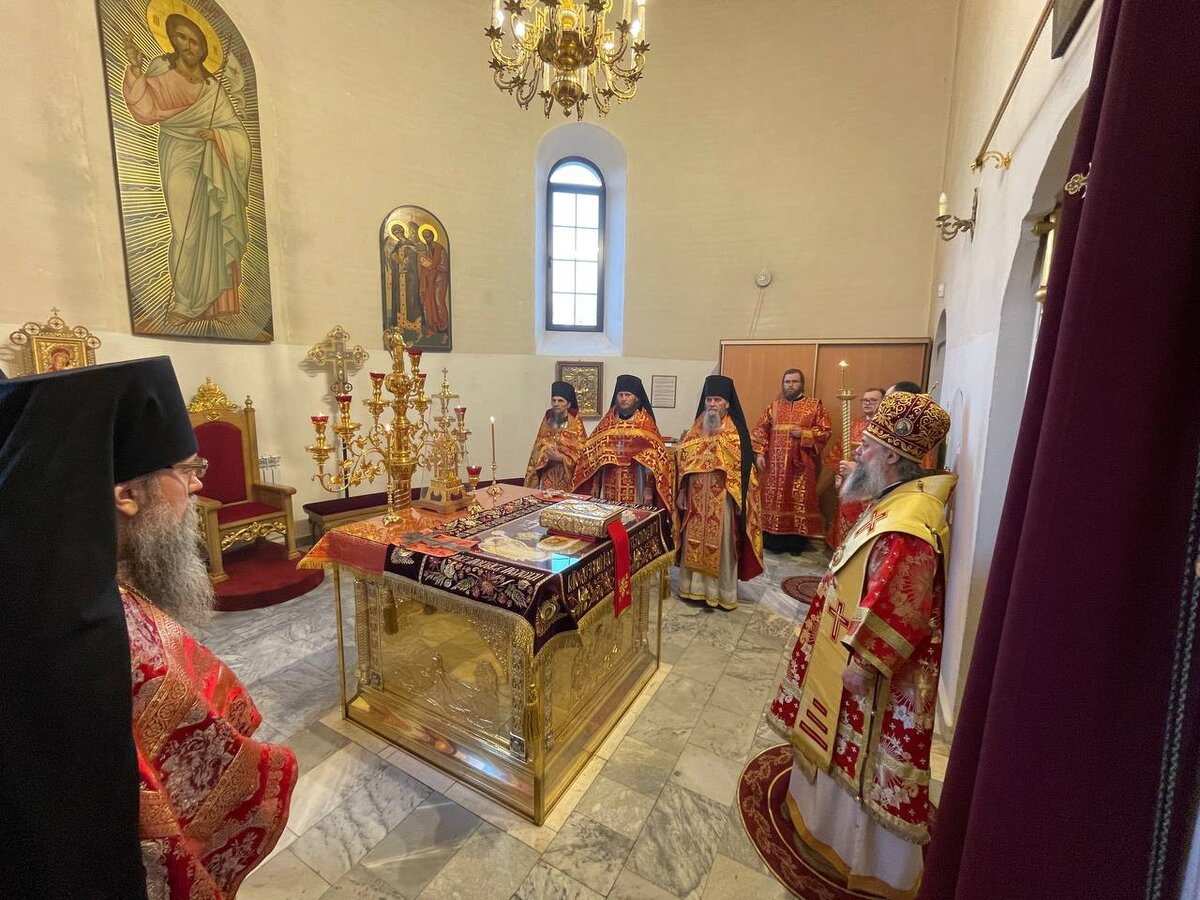 Владыке сослужили игумен Антоний (Мухин), Игумен Вонифатий (Клименко), иеромонах Серафим (Лопухов), иеромонах Авраамий (Москвитинов), иеромонах Иаков (Лукашкин), иеромонах Иннокентий (Терзи), диакон Кирилл Штанин, иеродиакон Боголеп (Сайфулов), диакон Георгий Алексеев.