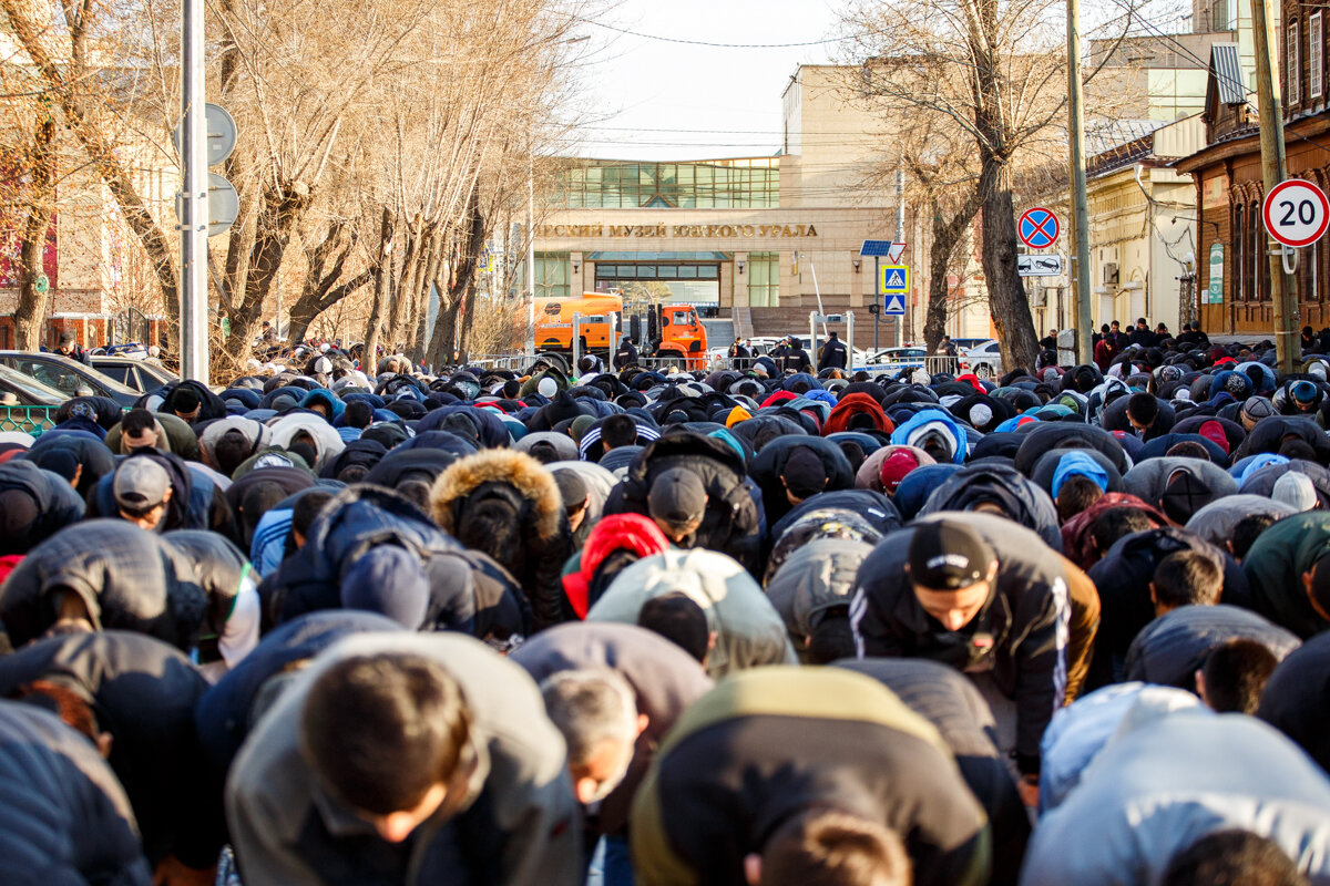 Намаз на тротуаре: челябинские мусульмане встретили Ураза-байрам