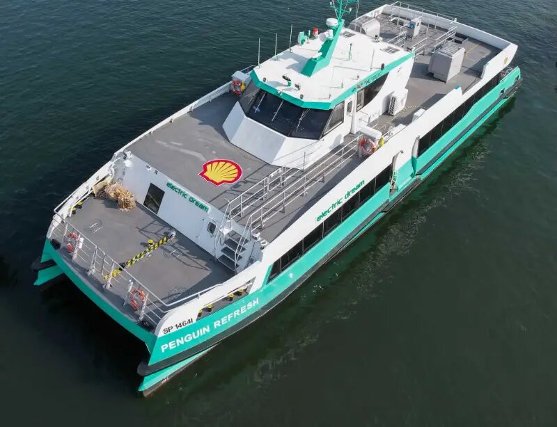 В порту города-государства Сингапур спущен на воду первый в мире полностью электрический паром Penguin Refresh, спроектированный, построенный и эксплуатируемый компанией Penguin International Limited. Зарегистрированное в Сингапуре судно будет использоваться Shell с мая 2023 года для перевозки персонала между материковой частью города и островом Пулау-Буком в Сингапурском проливе, где размещается нефтеперерабатывающее и нефтехимическое производство. «Те, кто работает в компании Shell Energy and Chemicals Park Singapore на Пулау-Буком, могут рассчитывать на тихие и комфортные поездки на работу и обратно», — сообщил министр транспорта Сингапура С. Исваран. Исполнительный директор морского и портового управления Сингапура (Singapore's Maritime and Port Authority, MPA) Тео Энг Ди отметил, что это первый электропаром в мире. «Мы воодушевлены тем, что это значительно опережает график 2030 года, когда все новые портовые суда будут полностью электрическими, смогут использовать 100% биотопливо