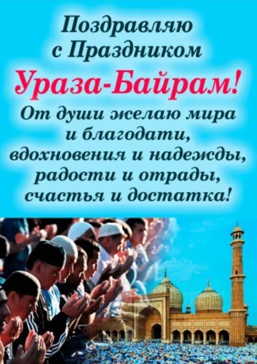 От души поздравляю всех мусульман со светлым и чистым праздником Ураза Байрам! Пусть тепло, счастье, любовь и благополучие всегда живут в ваших домах. Пусть на сердце всегда будет радость, в душе — покой, а в семьях — мир и согласие. Будьте умиротворены, и пусть ваш дом будет наполнен смехом, слезами счастья и искренности 🤲 Аминь.