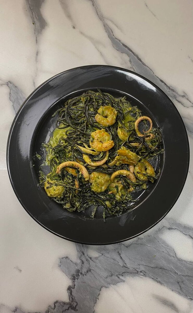 Полное морское погружение. Готовится быстрее карбонары и по вкусу совсем не уступает. Если вы не пробовали пасту с чернилами каракатиц, то скорее исправляйте эту ситуацию, ведь она имеет очень характерный вкус. Также бывают и просто черные пасты с красителем, вкус у которых как у обычной пасты. Нам же нужна именно с чернилами каракатиц.