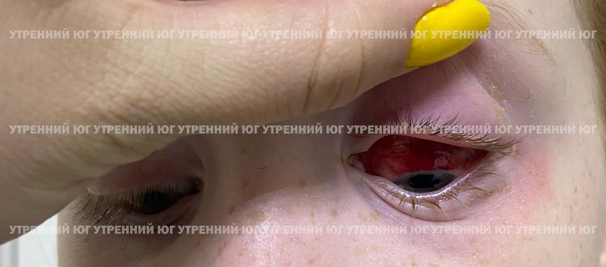 Его отличительные пугающие симптомы она обнаружила у своей 7-летней дочери и хотела выяснить, действительно ли она заболела именно им. Об этом женщина 21 апреля сообщила в беседе с «Утренним Югом». Жительница Краснодара прислала в редакцию «Утреннего Юга» рассказ о том, как не смогла найти в Краснодарском крае ни одной лаборатории, способной выявить в анализе крови новый штамм коронавируса «Арктур». Диагностика требовалась её заболевшей дочери. 7-летняя девочка, как показалось матери поначалу, заболела обычной простудой – появились насморк и температура. Однако позже у ребёнка покраснел и опух глаз, чего до этого ни разу не случалось. В детской поликлинике утром малышке поставили диагноз «Острый конъюнктивит» и отправили домой лечиться симптоматически. Так глаз ребёнка выглядел утром... «К вечеру глазной белок вообще просто залило кровью. Врачи скорой помощи, которую мы вызвали после телефонной консультации с доктором детской инфекционной больницы, сначала подумали, что у дочки какая-т