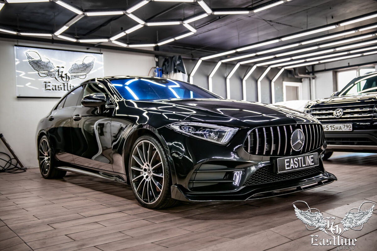Всем доброго времени суток! Как-то так получилось, что постов стало выходить меньше, но дело далеко не в том, что нам нечего рассказать и показать, а в точности, да наоборот: работа в тюнинг-ателье Eastline Garage кипит настолько, что у нас просто не хватает времени на всё. Но мы исправляемся и сегодня на ваш суд представляем работу по перетяжке потолка. Очередной наш клиент – Mercedes-Benz CLS. Это четырехместное четырехдверное люксовое купе от уважаемого немецкого производителя Mercedes-Benz. Салон посетившего нас Mercedes-Benz CLS в кузове С257 полностью перетянут в натуральную автомобильную кожу благородного коричневого цвета, но при этом потолок здесь был светлый бежевый. Владелец автомобиля такое решение дизайнеров Mercedes-Benz не поддержал: по его мнению, тёмный потолок под цвет салона будет смотреться тут более гармонично. А как Вы знаете, желание заказчика для нас закон! Итак, в качестве нового материала для потолка и всех сопутствующих элементов "верхней части" владельцем ав