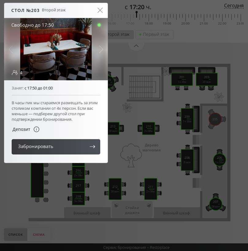 Ходили с подругой в 8 вечера в будний день. И решили забронировать столик. И не зря! Посадка полная. Просто так зайти с улицы поужинать, скорее всего, не получится. Бронирование у них интересное – есть вариант онлайн, где можно даже столик выбрать. Есть фото столика и карта расположения в целом. Первый раз вижу такое, прям технологии.