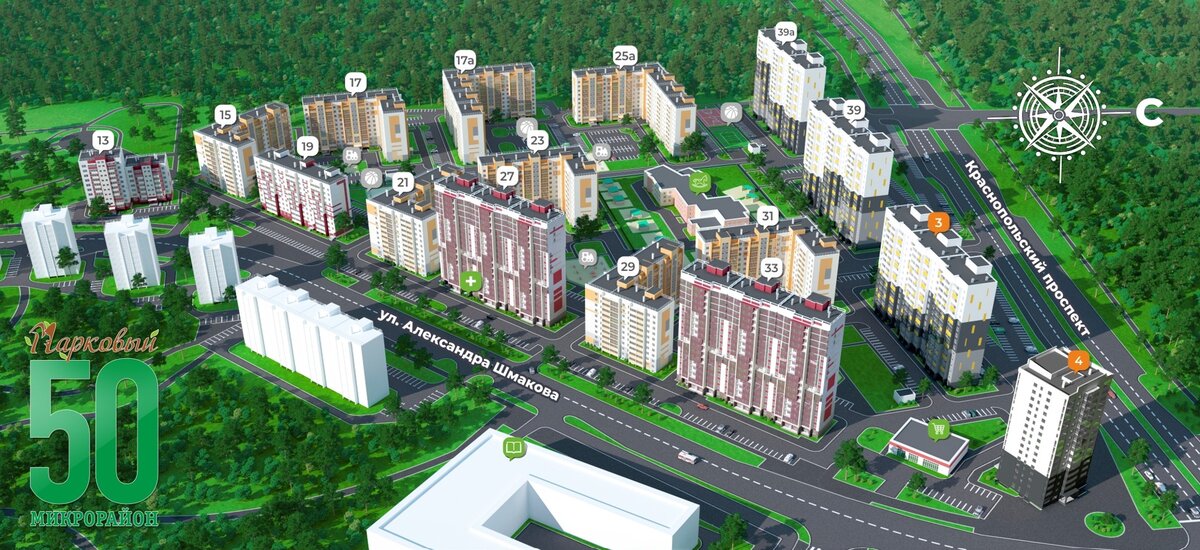 50 микрорайон стал продолжением крупнейшего проекта «Парковый» от Южно-Уральской Корпорации жилищного строительства и ипотеки. Комплекс расположен в северо-западной части города Челябинска, сочетает развитую социальную инфраструктуру и доступность основных транспортных магистралей. Территория состоит из 16 домов с благоустроенными дворами и парковками. 50 микрорайон воплощает пять главных принципов создателя бренда «Парковый» в Челябинске - Южно-Уральской Корпорации жилищного строительства и ипотеки: При производстве железобетонных панелей, поставляющихся для возведения домов микрорайона, используется суперпластификатор Полипласт СП-13, применение которого способствует получению бетонов высокой прочности, с повышенной водонепроницаемостью, трещиностойкостью и морозостойкостью.