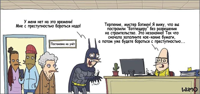 Короткие комические истории могут быть настоящими рисованными мини-шедеврами. При этом авторам совсем не обязательно рисовать километры кадров и придумывать десятки диалогов. При должном таланте вполне можно уложиться в один емкий кадр. Именно так и поступают авторы комиксов Wumo Майкл Вульф и Андерс Моргенталер. Популярность их работ легко можно объяснить стремительным ритмом современной жизни. Короткие комиксы просты в чтении и просмотре — многие люди не любят читать толстые книги или смотреть длинные фильмы. Кому то попросту лень, а у других нет времени, в таком случае краткость не только сестра таланта, но и способствует росту популярности. Комиксы Wumo часто относят к провокационным. Почему? А все из-за дерзких сюжетов и открытого насмехательства над всем вокруг. Авторы шутят абсолютно на любые темы, начиная с рождения и заканчивая смертью, не обходят стороной религию и политику. Критики считают, что художники таким образом раздвигают рамки и показывают, что в юморе нет границ.