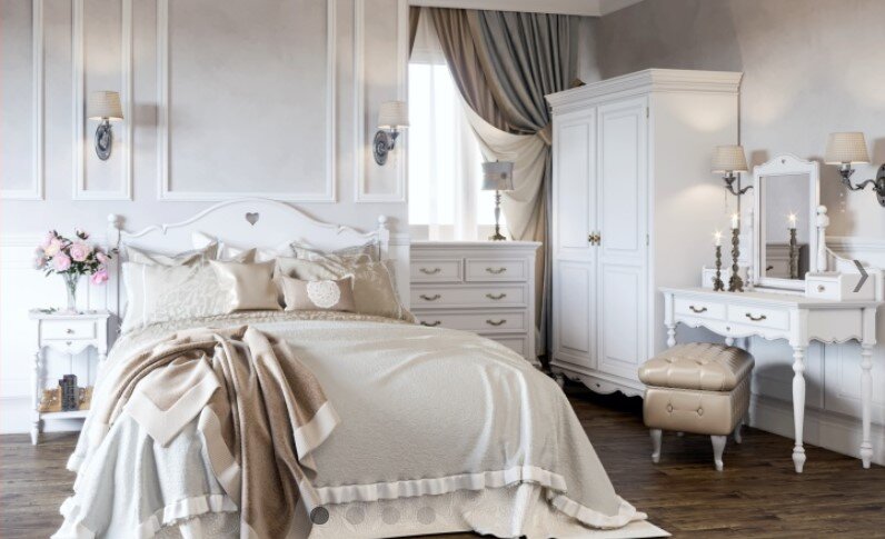 Белая мебель в стиле солнечной французской провинции создана для любителей утончённой простоты и семейного уюта. Стилю прованс характерно всё только натуральное и природное – мебель из массива дерева, натуральные ткани, керамика в интерьере, выполненная вручную резьба. Мебель в стиле Прованс великолепно подойдёт для гостиной, спальни, детской, или подростковой комнаты, а так же загородного дома, или кухни. Традиционно это простые формы, безусловное удобство диванов и кресел, мягкие плавные изогнутые формы. Стиль прованс получил еще название французского интерьера. Необходимо отличать романтическую мебель лёгкого лазурного Прованса – стиля летнего отдыха и удовольствия, наполненного свежим воздухом, солнцем, запахом моря, цветов и полей, от белой мебели итальянского стиля. В отличие от залакированной и позолоченной белой мебели итальянского королевского стиля, французский Прованс – это натуральное дерево, проглядывающее сквозь патинирование (искусственное состаривание), цветочные орна