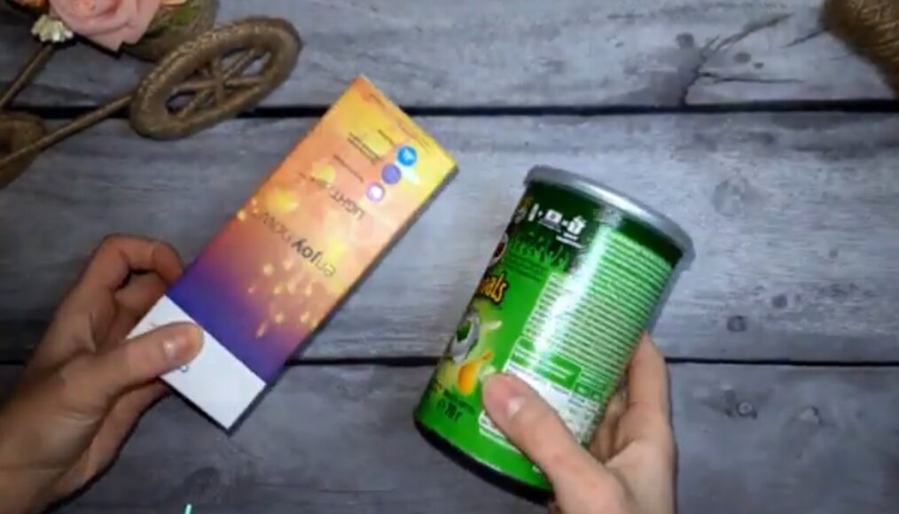 Покажу, что я сделала. Из банки от Чипсов и ненужной коробки от Телефона.