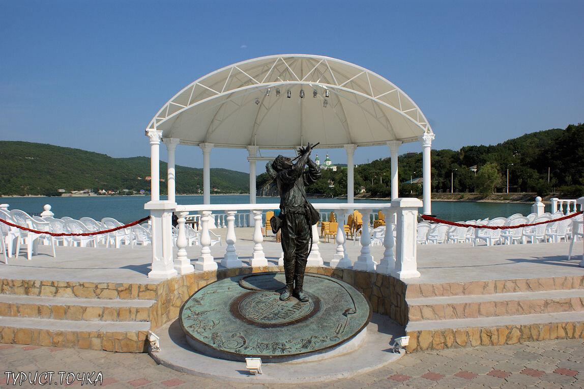 На набережной озера Абрау в посёлке Абрау-Дюрсо (Краснодарский край) стоит симпатичный памятник герою старого советского фильма «Весёлые ребята». Фильм снят в 1934-м году и хорошо известен старшему поколению нашей большой страны. Он прославился звёздным составом (актёры: Леонид Утёсов, Любовь Орлова, Мария Стрелкова, композитор Исаак Дунаевский) и входит в список классических шедевров музыкальных комедий СССР. Фильм был успешен не только в Советском Союзе, но и за границей. Его показывали на 2-м Венецианском фестивале (где включили в шестёрку лучших фильмов) и в США. Пастушок из фильма «Весёлые ребята» Для тех, кто не в курсе, напомню, что пастуха-музыканта в этом фильме играл известный певец и дирижёр Леонид Утёсов, поэтому скульптуру на набережной Абрау называют также памятником Утёсову. Великий советский музыкант, столь удачно воплотивший образ забавного в пастушка Кости Потехина, изображён в полный рост, играющим на флейте. Интересно, что в процессе работы над фильмом его рабочее н