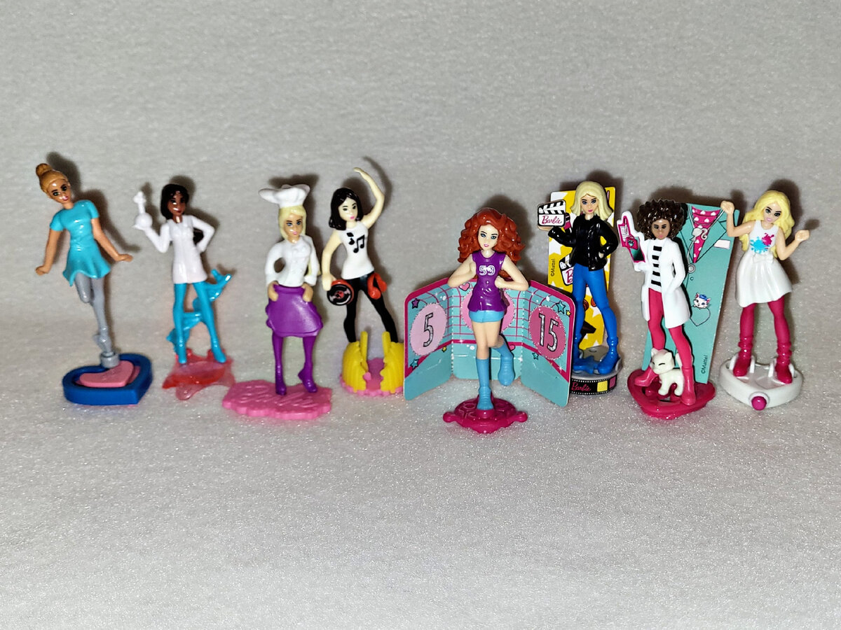 Полная серия фигурок из шоколадных яиц Kinder Surprise «Барби. Профессии мечты» (2019) Оригинальное название — «Barbie Traumberufe». В серии 8 персо