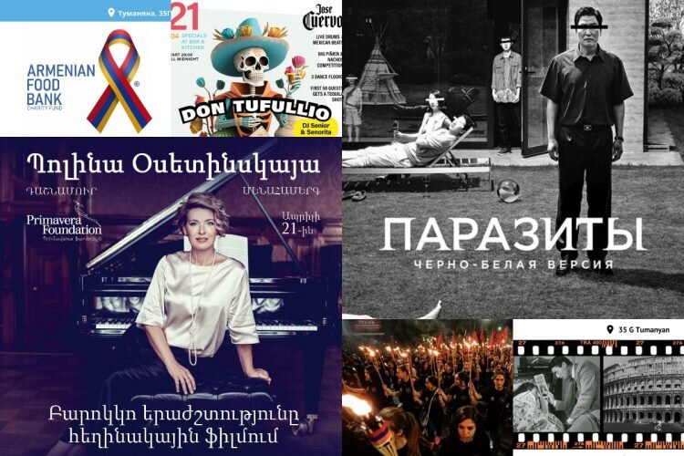 Редакция Armenia Today собрала самые интересные культурные события, которые пройдут в Ереване в эти выходные, с 21 по 23 апреля. Выбирайте, что нравится, и присоединяйтесь к нам! 1. Впервые в Ереване с сольным концертом выступит Полина Осетинская. В программу фортепианного концерта «Музыка барокко в авторском кино» вошли сочинения Баха, Генделя, Рамо и др. Концерт состоится в Концертном зале Арама Хачатуряна 21 апреля в 19:00. Стоимость билетов от 5000 до 25000 AMD. 2. Уголок мексиканской культуры в Ереване. Специальное меню на кухне и в баре, музыка латиноамериканских мотивов. А первые 50 гостей получат бесплатную текилу. Оперативно перенесемся на другой конец света на вечер. Мексиканская вечеринка состоится в TUF (42 Arami St) 21 апреля в 20:00. Стоимость входа 1000 AMD. 3. День благотворительности в Letters & Numbers (35G Tumanyan St). Цель дня благотворительности – сбор еды и одежды для малоимущих семей с детьми и беженцам из Арцаха. Будет организован сбор продуктов и одежды, прода