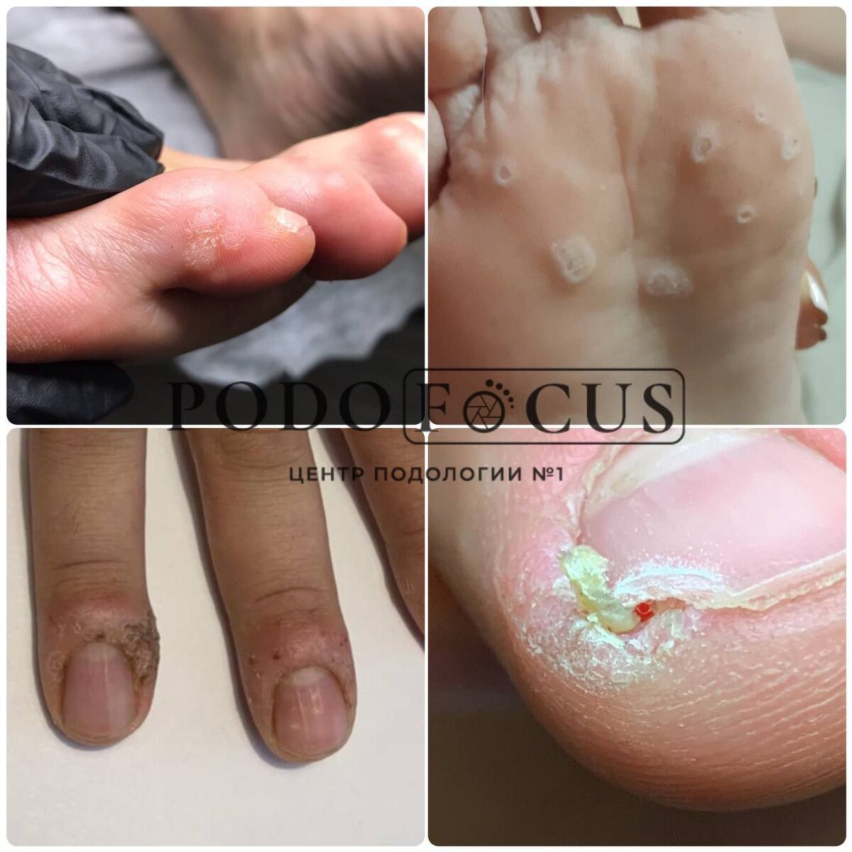 Название ладонно-подошвенных бородавок говорит само за себя, ведь образуются они на ладонях и подошвах, а также на коже пальцев. Могут быть как единичными элементами, так и появиться в большом количестве. Визуальный размер варьируется от 0,5 мм до нескольких сантиметров. Причина образования бородавок – вирус папилломы человека (ВПЧ), которым, по статистике, заражены около 80% населения. Вирус проникает в организм при нарушении защитного барьера кожи, при микротравмах или же при мацерации, а самые частые места заряжения – это фитнес-клубы, бассейны, бани/сауны и даже самозаражение. Попадая в клетку кожи, он полностью захватывает её, размножается и заражает клетки, находящиеся рядом (это если простыми словами). Пораженные вирусом клетки называют - бородавкой, папилломой или новообразованием. В отличие от бородавок на кистях, подошвенные часто причиняют сильную боль. Это связано с тем, что вокруг новообразования образуется гиперкератоз, который выполняет защитную функцию. При ходьбе прои