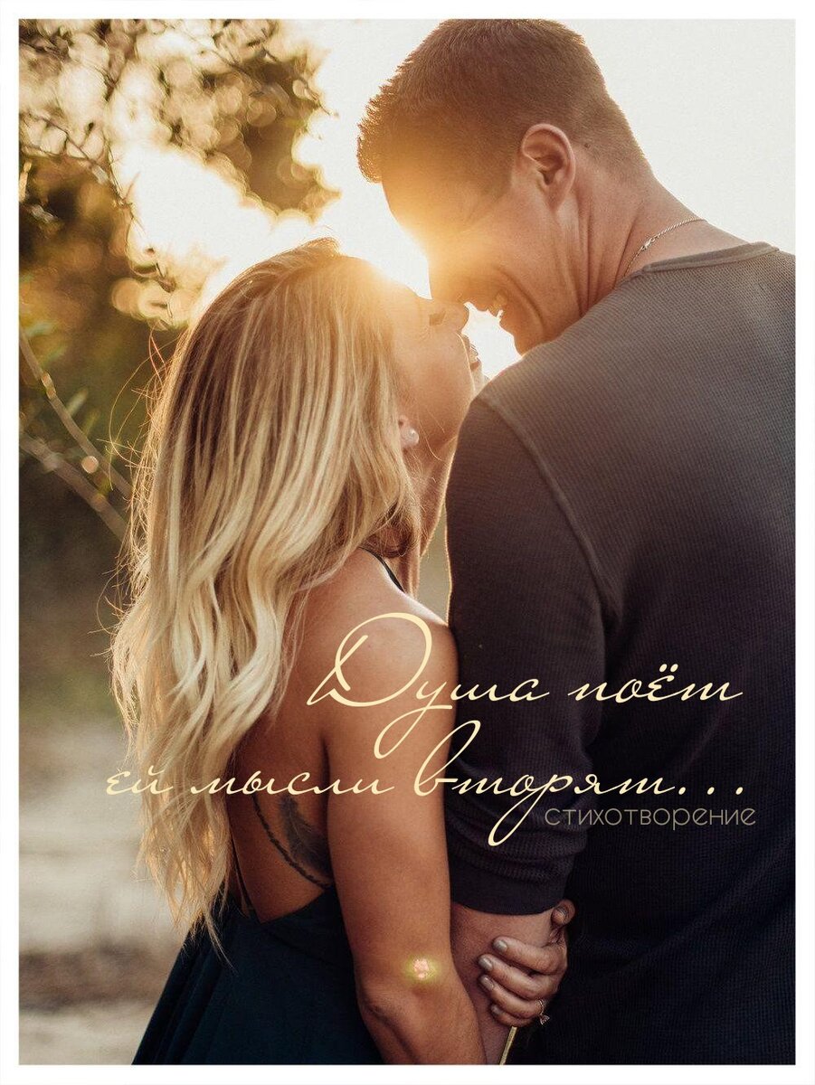* * * * * Душа поëт ей мысли вторят, Сердечко радостно стучит. Приятно думать что со мною Есть сердце, бьëтся в один ритм. Какое чувство ликования, Улыбка на лице моëм. А в голове одни признания, И всё о ней и день за днём. Какая сила проявилась, Любви волшебной торжество. Слова красиво превратились, В неугомоности тепло. Ах как пылает это чувство, Какой заряд в себе несëт. С ней меркнет каждое искусство, Она любой растопит лëд. Приятны думы, дни, рассветы Когда взаимности ответ. И строки рифмы лишь фрагменты, Прочувствовать еë сюжет...