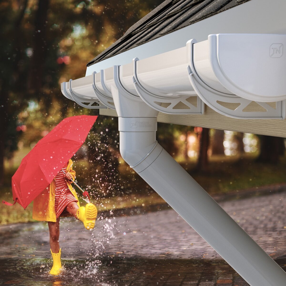 Пластиковая водосточная система ТЕХНОНИКОЛЬ изготовлена из прочного ПВХ. Он выдерживает широкий диапазон температур, не подвержен коррозии. Желоба устойчивы к нагрузкам и деформациям, гибкие и имеют память формы. Даже если зимой они прогнутся под весом снега или наледи, после они легко вернутся в прежнее состояние.