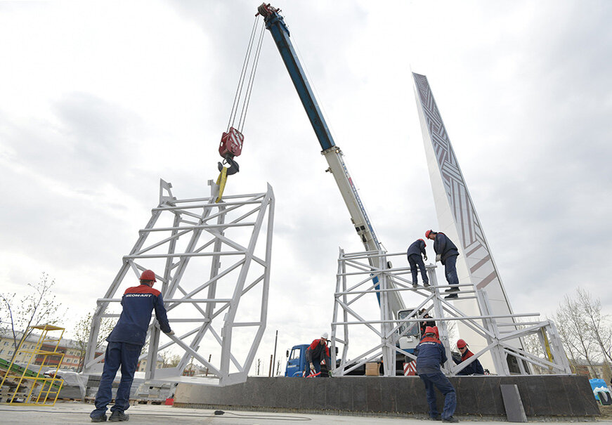 В Казани активно идет монтаж стелы «Казань — город трудовой доблести»