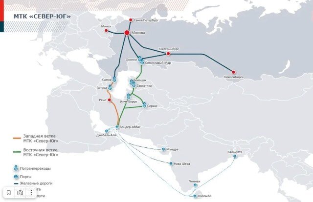 Иран стал транспортным хабом для импорта из третьих стран в Россию и для экспорта российских товаров. В соответствии с поручением президента России правительством РФ разработана и одобрена детальная дорожная карта по развитию коридора Север-Юг. По планам к 2030 году объем российских грузов по МТК Север-Юг увеличится почти в два раза – с текущих 17 млн до 32 млн. тонн.