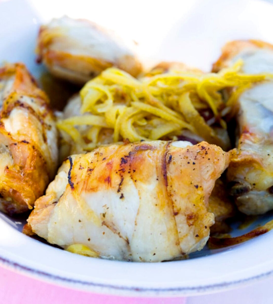 Сейчас я поделюсь с вами секретом, а потом добавлю еще и способ, который люблю сама (а я люблю кухню в стиле «фьюжн», то есть сочетание ярких вкусов). Если вы разделаете и запечете целую курицу – например, с картошкой, помидорами и луком, как любят все – то наверняка куски грудки будут наименее востребованы из всего содержимого противня. Грудка, конечно, полезна, но это мясо невыразительное по вкусу. Если его запекать так же, как, например, бедрышки, получится сухо. Чтобы сделать мясо сочным, есть два варианта. Первый: отварить или потушить в соусе, чтобы влага пропитала мясо. И второй: «запечатать» собственную влагу мяса. Исходя из опыта, я сделала вывод, что это лучше всего получается, если кусочки грудки обернуть тонко нарезанным салом или беконом. Я девушка возрастная, животный жир меня не пугает, потому что пара кусочков бекона не менее полезны, чем большая порция белка. Это в молодости всё своё – упругая кожа, хорошие волосы и так далее. А в зрелости без жиров не обойтись! Советы
