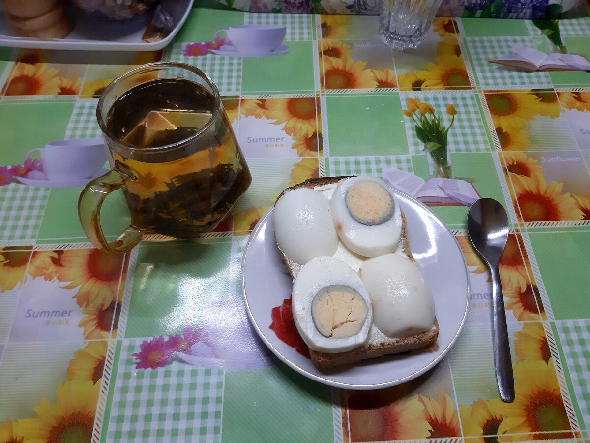 На завтрак у меня снова бутерброд с маслом и яйцом. На обед, в дополнение к супу приготовила салат с пекинской капустой. Для него взяла: 4 листа капусты, 1 маленькая морковь, немного лука, зелень, яйцо и ароматное подсолнечное масло. Все овощи нарезала, добавила яйцо и заправила маслом. На обед сырный суп, салат, кусочек кулича и брусничный морс. На полдник были помидоры с творогом. В творог добавила зелень, зубчик чеснока, заправила сметаной и выложила на дольки помидор. К чаю взяла творожные рогалики. На ужин решила приготовить рис с куриными отбивными. Филе разрезала вдоль. Каждый кусочек посолила и посыпала специями и отбила. Обваляла в муке и обжерила. Рис отварила в большом количестве воды, откинула на сито и прогрела со сливочным маслом. Ужин готов! Ещё доедала салат и пила чай. До свидания. Всем всего самого доброго 💖🤗🥰