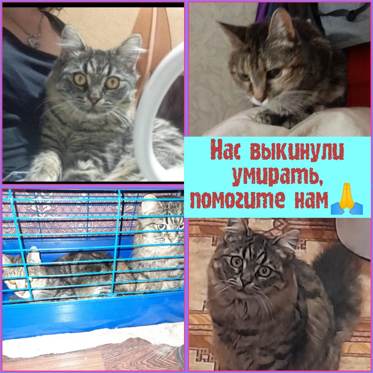 🆘🆘🆘 К нам обратилась за помощью девушка.Мы ранее помогали ей в лечении сбитой кошечке, в итоге взяв её на своё попечение. Вот такое смс мы получили.⤵️⤵️ Была у меня одна хорошая знакомая(она умерла),она помогала бездомышам-кастрация, стерилизация,передержки,питание... Ну и вполне естественным путём у неё у самой были коты и кошки.Жила в квартире,котики все у неё ухоженые,чистенькие,здоровые,кастрированые.После её смерти приехала дочка с зятем и всё по классике:квартира нужна а котики нет. Очередное предательство 😞 После которого все несчастные животные оказались на улице. Одна кошечка совсем старушка, выжить на улице ей будет практически невозможно 😪несчастные животные разбежались кто куда, двоих нашли, а трое в стрессе прячутся, ... Взять всех пятерых мы просто не можем, имея, за плечами более 100 кошечек 😣нам очень трудно , физически и материально,,двоих пушистиков мы заберём, а трое как найдуться поедут на передержку. Душа от таких вещей на куски... Их взяла на но