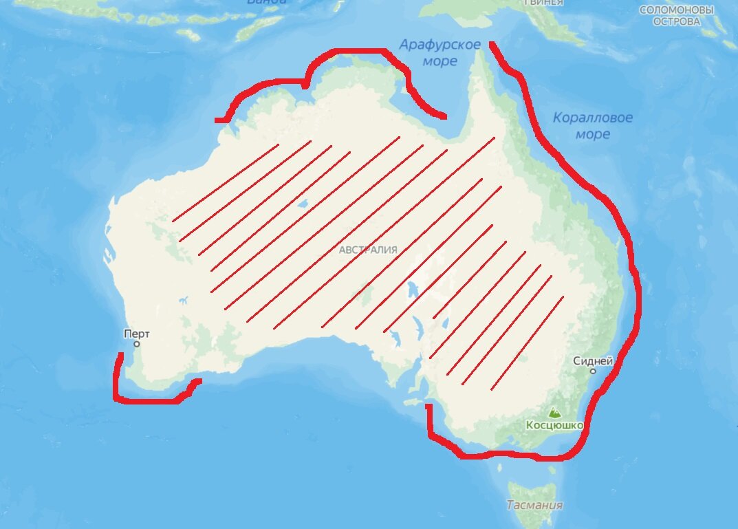 Большая часть континента Австралия не приспособлена для жизни. Дальше 200 км от побережья, населенных пунктов практически нет.