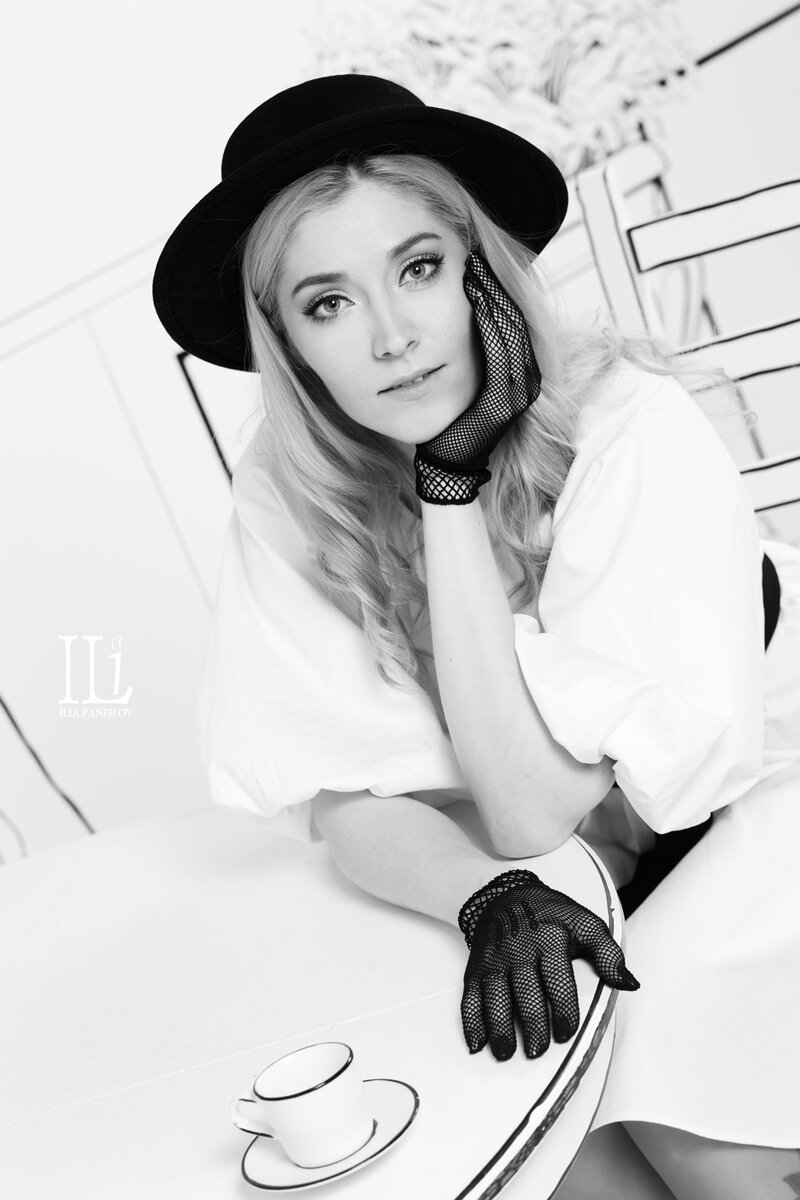 🧐 Провели съёмку в интересном зале фотостудии "Wood-studios", который называется "Скетч" – т.е. набросок, эскиз. Поэтому использовали одежду чёрного и белого цвета, что бы сделать гамму с сильным контрастом и близкой к высокому ключу. Стараясь сотворить фотографии близкими по настроению к рисунку. И вот результат... А ещё давайте пофантазируем про нарисованный городок... Девушка оказалась в необычном мире, где все вокруг было нарисовано. Она пришла в очаровательное кафе. Стол, за который она села, был также нарисован вручную и имел неповторимый шарм. Мягкий белый фон стен и освещение создавали атмосферу красивого сна, из которого даже не хотелось просыпаться. За окнами, нарисованный парк с превосходным видом. Девушка была окружена тонким, прекрасным миром, и невольно начала задумываться, к чему же это ее привело и что она найдет здесь дальше. Она решила пройтись по нарисованным улицам и исследовать этот мир еще больше. Вокруг были нарисованные люди, которые занимались своими делами, и