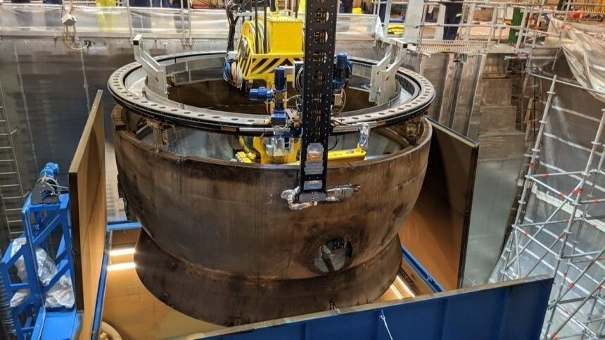 Общий вес доставленного груза составляет почти 3,5 тысячи тонн. Фото: www.globallookpress.com / Rosatom; 5-tv.ru Сразу два комплекта оборудования для атомных электростанций в Индии и Китае отгружает «Росатом» в Волгодонске. Это первый такой опыт в истории мировой энергетики. Энергоблоки двух стран, тоже сооружаемые по российским проектам, получат корпуса ядерных реакторов и парогенераторы. «В этом году, вы сейчас видите, это пятый блок „Куданкулама“, он уже в отгрузке. В следующем году будет отгружен шестой блок. То, что касается китайских наших партнеров, у нас четыре блока в работе, это две атомные станции. Это „Тяньвань“ и „Сюйдапу“», — рассказал генеральный директор АО «Атомэнергомаш» Игорь Котов. Общий вес оборудования составляет почти 3,5 тысячи тонн. Сначала технику доставят на специализированный заводской причал, откуда на баржах —сначала в Петербург, а затем уже морем — в конечные пункты назначения.