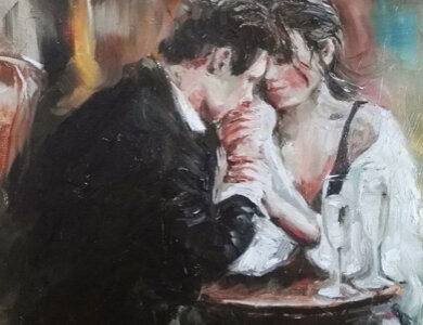 Ты приходи, Тебя я жду! Я стол накрыл И свечи жгу. У нас с тобой Вечерний раут , Костюм с иголочки надет, А на столе большой букет. Нас ждут с тобой Такие блюда. Слюну готов , платком стереть, Ведь я готовил эту снедь. Польётся музыка тихонько, В бокалах к верху пузырьки. Мы смотрим через стол влюблённо, Сжимая пальчики руки. Кольцо на пальчик, Приклонив колено, И предложение руки, Такой сюжет тебя смутил. Сижу в дверях, А свечи меньше. Не знаю , что там впереди. Поставлю вновь в подсвечник свечи. Я жду тебя! Ты приходи!