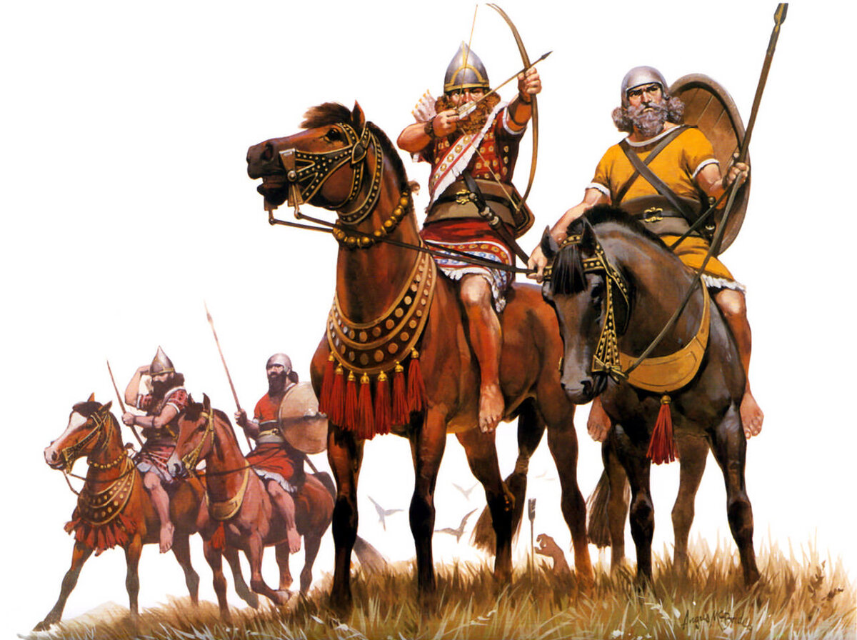 Есть мнение, что верховая езда, а следовательно и конница, впервые появляются в Ассирии в X столетии до новой эры. Это малораспространённое мнение, ибо ознакомиться с ним можно было в советском учебники истории, за пятый, кажется, класс. Читать же учебники, – и подавно запоминать в них написанное, – в советское время в среде школьников принято как-то не было. Насколько понимаю, с тех пор ничего не изменилось.