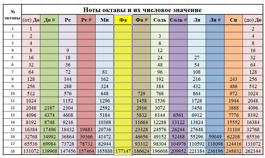 Доброго нам дня, дорогие друзья! В поисках гармонии и тона ноты Фа в предыдущей публикации, с помощью октав - 2/1 и квинт- 3/2 нам удалось, в виде простой таблицы, получить, выраженные в числах, значения частот нот и увидеть принцип рождения музыкального строя. Строй - Строить - Строительство... Название, наверно, только осталось, а ладно строить, как оказалось - мелодия, хотя, глядя на зодчество "древних" об этом можно было только догадываться, а для "технаря", обилие элементов современных технических устройств, как фрагментов разобранной системы, в "культовых" сооружениях, порождало смутные сомнения. Но, об этом позже, а пока наш строй без тона Фа и для завершения построения следует его найти. Это совсем не займет у нас много времени, так как отношения в интервалах уже определены и нам будет достаточным вернуться к началу и отложить квинту в другом направлении, то есть при вычислении выполнить инверсию и перевернуть дробь 3/2 для преобразования в 2/3. В третьей октаве, например,