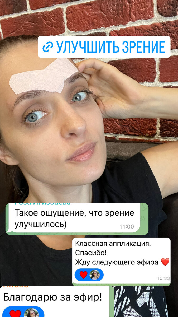 привет! Провела эфир, разгладили межбровку и в конце затейпировались. Попробуй, уже через 15 мин почувствуешь результат🙂