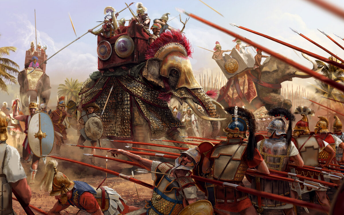 Итак, по порядку. Слоны – танки античного мира, в игре являются самым дорогим юнитом с ценовым диапазоном от 1400 до 2100 монет. Всего имеется 7 различных отрядов. Самые дешевые и слабые среди них – африканские слоны и союзные африканские слоны. Затем идут наемные индийские/индийские боевые слоны и африканские боевые слоны. А самые сильные из слонов – индийские бронированные слоны и наемные сирийские бронированные слоны (разница в стоимости аж на 200 монет совершенно не оправдана, так как характеристики слонов абсолютно идентичные, за исключением того, что у первых на спине лучники, а у вторых метатели дротиков). Все слоны обладают свойствами: бесстрашные, боевое безумие, внушают страх, ответный удар и привычные к жаре. А также навыками: напор и убийство слонов. У слонов самый большой урон и самый высокий показатель здоровья среди всех юнитов. Помимо огромного физического урона, слоны очень сильно влияют на мораль оппонента.