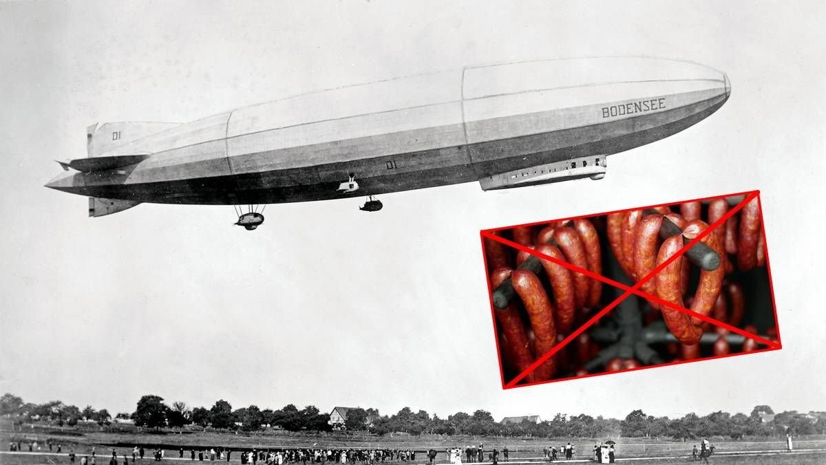 Что связывает великие немецкие дирижабли времен Первой мировой войны с колбасой? Казалось бы, на самом деле ничего, кроме разве что похожей формы. Однако история цеппелинов показывает, что даже две такие разные вещи могут быть тесно связаны между собой. Давайте разберемся, почему в Германии не было колбасы во время Первой мировой войны и при чем тут знаменитые цеппелины.