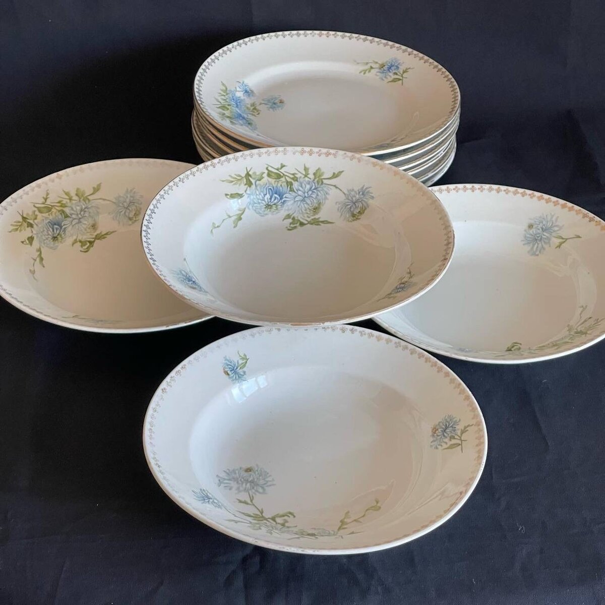 - Полный комплект из шести столовых тарелок и плюс четыре глубокие тарелки с нежными 🌸хризантемами.