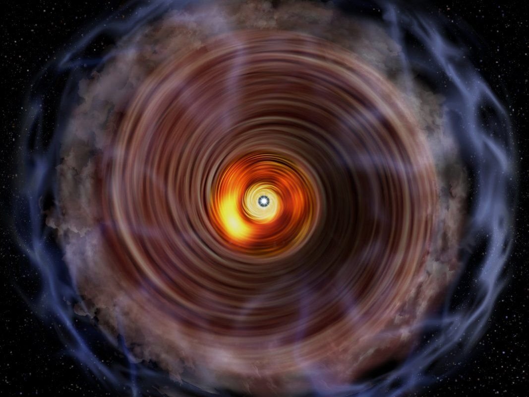 Звезды с массой до 120 масс Солнца являются ключевым фактором в эволюции галактик : они перекачивают энергию в свое окружение и обогащают галактики тяжелыми элементами, которые не могут быть произведены где-либо еще. Однако массивные звезды окутаны тайной — на самом деле, мы до сих пор до конца не понимаем, как рождаются эти монстры. Что мы знаем? Массивные звезды рождаются в молекулярных облаках , которые коллапсируют под действием собственной гравитации и распадаются на сгустки. Горячие ядра образуются в центрах этих сгустков по мере того, как они продолжают разрушаться. Вокруг этих ядер формируются аккреционные диски , которые доставляют материал из коллапсирующего облака к будущей звезде и помогают ей расти до точки, где может начаться ядерный синтез. Наблюдения показывают, что в масштабах от ~ 200