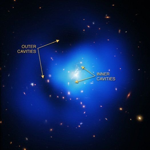 Новые наблюдения скопления Феникс в рентгеновском, ультрафиолетовом и видимом свете помогают астрономам лучше понять этот необычный объект. Скопления галактик часто указываются в превосходной степени. Неудивительно — ведь это огромные скопления галактик, раскаленного газа и темной материи, которые, кстати, являются крупнейшими наблюдаемыми, гравитационно связанными структурами во Вселенной. Такие скопления плохо производят новые звезды в своих центрах. Как правило, там есть одна гигантская галактика, и звезды формируются гораздо медленнее. чем большинство обычных галактик, включая Млечный Путь. В центральной галактике также есть черная дыра примерно в тысячу раз более массивная, чем та, что находится в центре нашей галактики. Считается, что он действует как своего рода термостат, чтобы предотвратить быстрое охлаждение окружающего горячего газа, что, в свою очередь, препятствует звездообразованию. новые данные, собранные учеными, гораздо больше говорят нам о том, как скопление галактик
