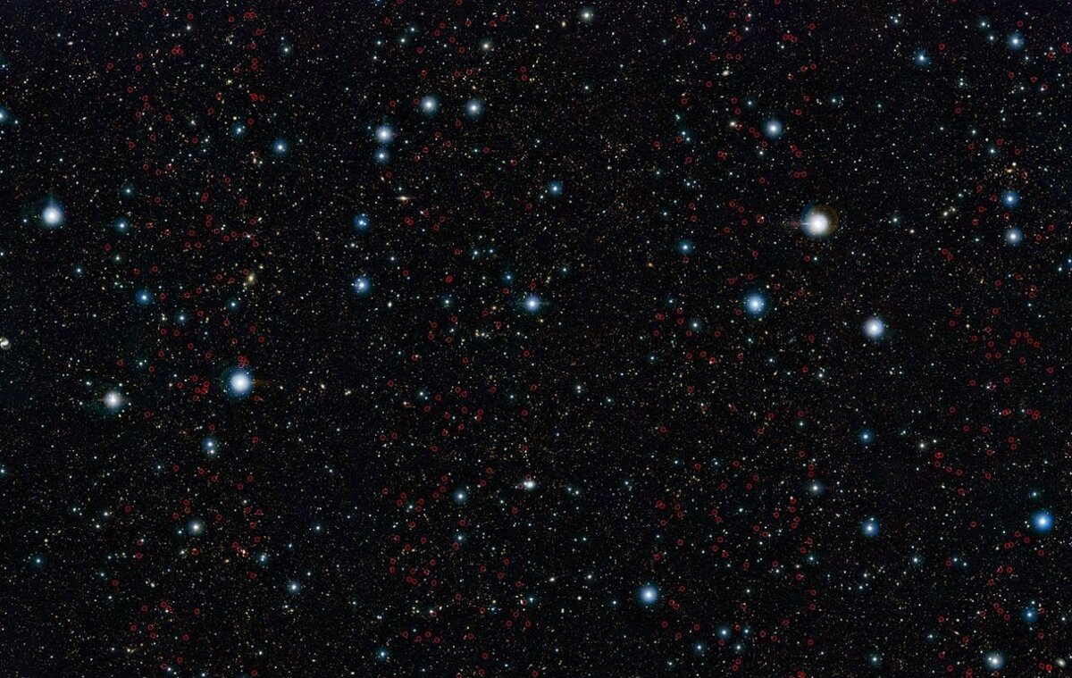Группа астрономов во главе с Кариной Капути из Астрономического института Каптейн при Гронингенском университете обнаружила множество далеких галактик, которые ускользали от предыдущих исследований. Ученые использовали изображения из обзора UltraVISTA , одного из шести проектов, использующих телескоп VISTA для исследования неба в ближнем инфракрасном диапазоне. Они составили список слабых галактик, когда Вселенной было от 0,75 до 2,1 миллиарда лет.