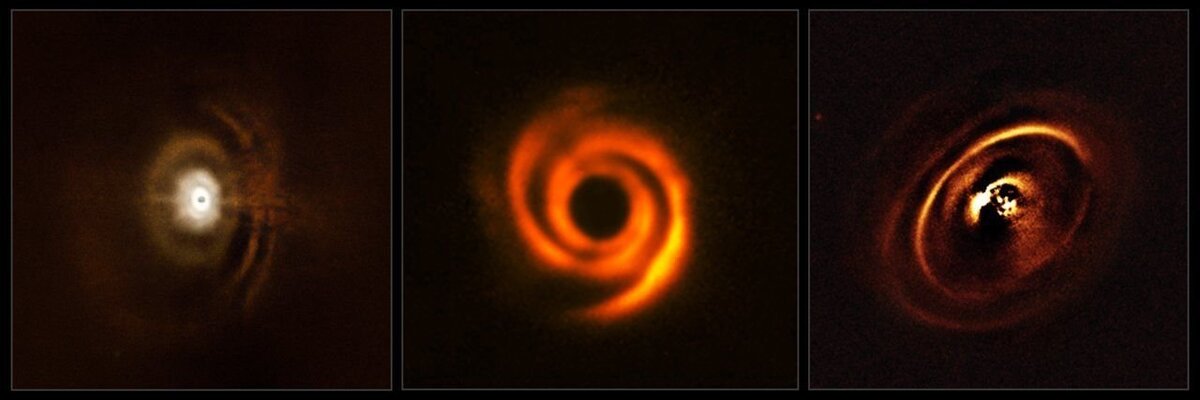 Европейская южная обсерватория (ESO) представила изображения протопланетных дисков, полученные тремя исследовательскими группами астрономов. Благодаря прибору СФЕРА на VLT ученые смогли изучить, как планеты влияют на протопланетные диски, из которых они образовались. Один из таких процессов мы видим в действии «вживую».