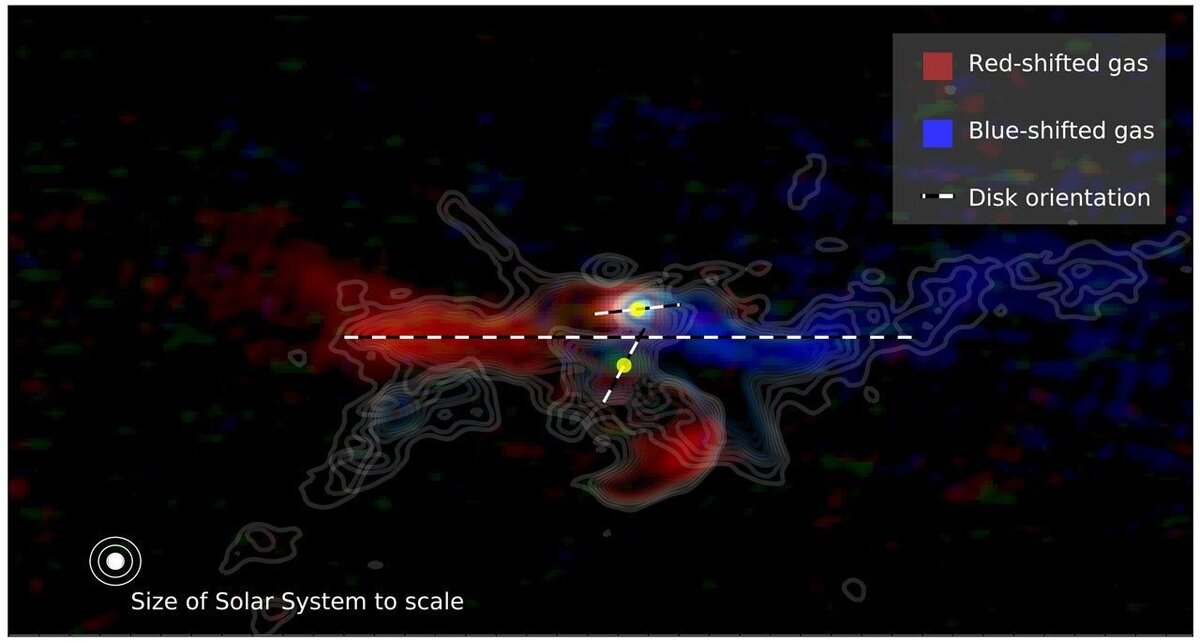 Ученые из Дании, Великобритании и Нидерландов нашли очень необычную, молодую звездную систему, в которой две звезды и целых три вращающихся газопылевых диска вокруг них. Университет Копенгагена сообщил о последних наблюдениях с помощью сети радиотелескопов ALMA.