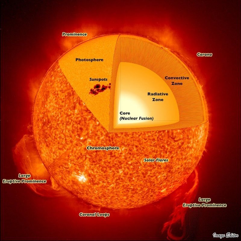 Солнце характеризуется полярным магнитным полем. Мы можем представить их как наличие большого вытянутого магнита, вставленного в ось его вращения. Примерно каждые одиннадцать лет северный полюс этого магнита начинает меняться местами с южным. Это явление происходит довольно регулярно и сопровождается большим, нетрудным для наблюдения количеством поверхностных пятен — это просто места, где горячая плазма встречается и переплетается с линиями «закрученного» магнитного поля.