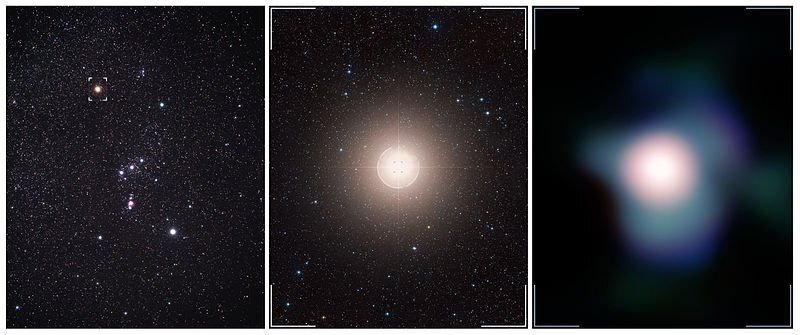 Бетельгейзе, безусловно, одна из величайших известных нам звезд. Имеет относительно низкую температуру поверхности. Отсюда и его красноватый цвет — желтые солнцеподобные звезды, а также белые и голубоватые звезды гораздо горячее. Бетельгейзе — ближайший к нам сверхгигант. Таким образом, он представляет собой исключительно большие звезды - по крайней мере в 15 раз больше Солнца, хотя и не обязательно самые массивные.