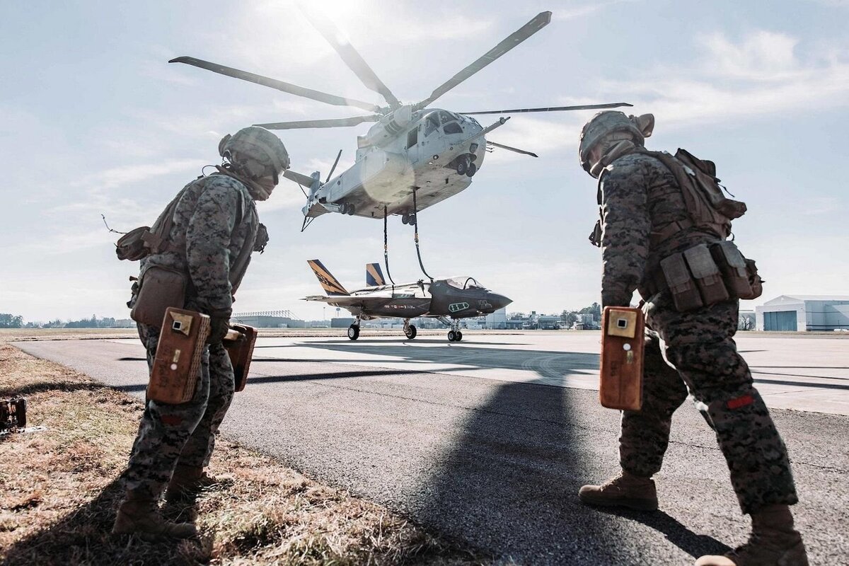 Мощный колосс, способный перевозить грузы невероятных размеров. Вот так в двух словах можно охарактеризовать вертолет CH-53K King Stallion. Этот самолет был одобрен для крупносерийного производства в конце прошлого года, спустя добрых семь лет после его первого полета, и теперь он оставил свой след в мире, перевезя самый совершенный истребитель из когда-либо существовавших. CH-53K King Stalion — тяжелый американский вертолет специального назначения, который выведет возможности морских пехотинцев на новый уровень. В настоящее время Корпус морской пехоты США в основном использует вертолеты CH-53E для выполнения миссий, требующих действительно тяжелой техники. Они выпускались с 1980 по 2003 год и используют три двигателя общей мощностью 13 140 лошадиных сил, которые позволяют поднять в воздух всего 33 340 кг взлетной массы (13 600 кг в кабине или 14 500 кг на подвеске). Однако парк базовых СН-53Е в руках морской пехоты будет дополнен значительно усовершенствованными и мощными вертолетами,