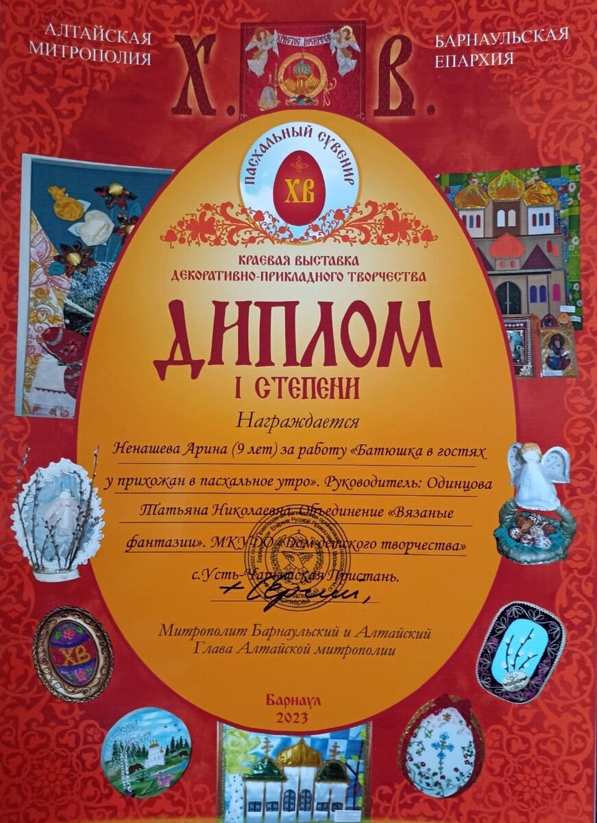 Рукодельная история Арины Ненашевой. И победа в конкурсе "Пасхальный сувенир" - 2023 Алтайской митрополии!